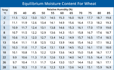 - [3] “Equilibrium Moisture Content Charts for Grain Storage Management” Prairle Agricultural Machinery Institute (PAMI), https://pami.ca/wp-content/uploads/2021/10/Equilibrium-Moisture-Content-Charts-for-Grain-Storage-Management_rev2.pdf