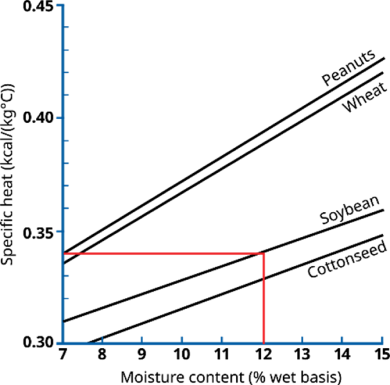 - Figure 4 – Specific heat plot for different grains according to their moisture content [4]